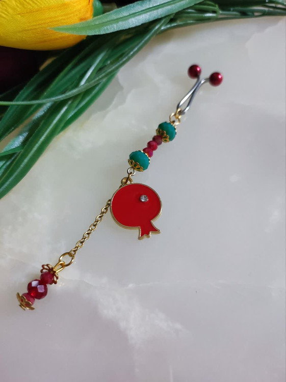گیره روسری مجلسی یلدایی طرح انار تک آویزه