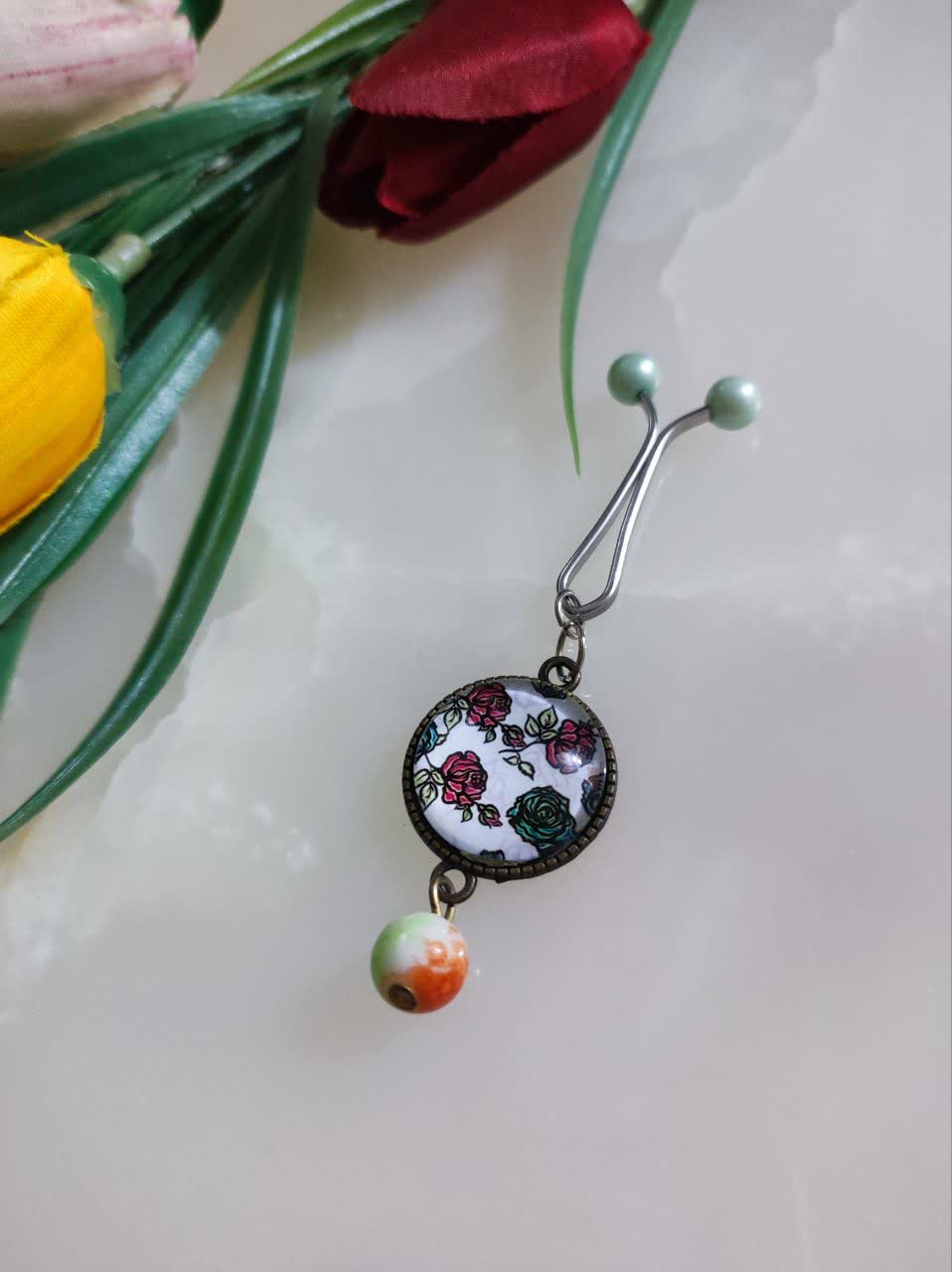 گیره روسری مجلسی طرح چندگل برنزی (بزرگ)