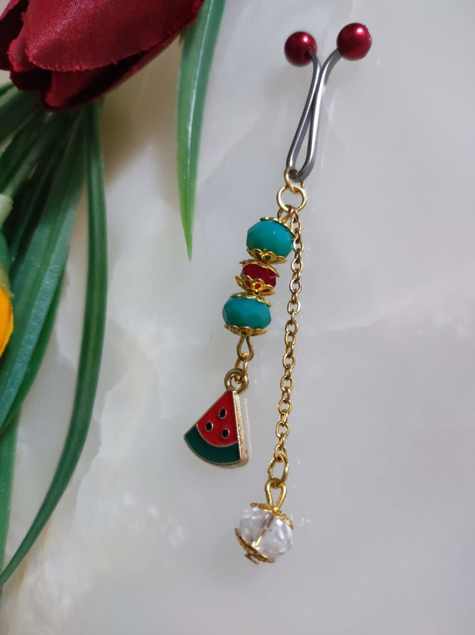 گیره روسری مجلسی یلدایی طرح هندوانه کوچک تک آویزه